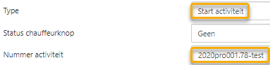 In de applicatie verschijnt een tikking van het type Start activiteit.