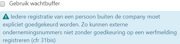 Maar er is natuurlijk een keerzijde ... door volledig te automatiseren verlies je natuurlijk enigszins controle. Wie heeft zich aangemeld via jouw prikklok? Een werknemer van een onderaannemer zoals aangegeven in de aangifte van werken? Of een onderaannemer voor dewelke de werkmelding nog dient te gebeuren? Als je van oordeel bent dat controle primeert boven volledige automatisatie, is het zeker aangewezen gebruik te maken van deze wachtbuffer! Aanwezigheidsregistraties door externe personen worden niet doorgestuurd naar de RSZ tot ze zijn goedgekeurd.