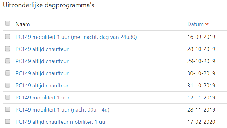 - In de gebruikersgegevens kan je nagaan op welke data je voor een gebruiker een uitzonderlijk dagprogramma hebt ingesteld.