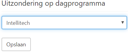 Onder de tikkingen wordt het standaard dagprogramma vermeld en kan je een uitzonderlijk dagprogramma instellen. Kies het gewenste dagprogramma uit de lijst en bevestig met een klik op de knop Opslaan.