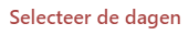 Selecteer individuele data door deze in de kalender aan te klikken, selecteer opeenvolgende data door de linkermuisknop ingedrukt te houden en te slepen. Een combinatie van beide mag natuurlijk ook! De geselecteerde data worden hierbij grijs ingekleurd.