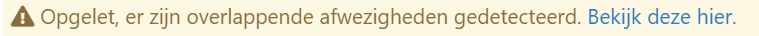 Via een klik op de link Bekijk deze hier krijg je een opsomming van de overlappende afwezigheden die voorheen werden toegevoegd.