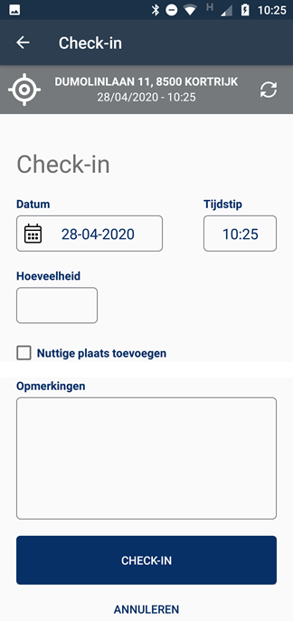 Geef in het veld Hoeveelheid het aantal items in dat je op deze locatie wenst in te checken.