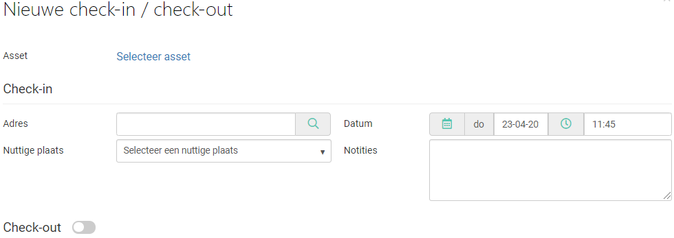 Andere assets zijn mogelijk niet uitgerust met een actieve tag. Een fysieke locatie toewijzen gebeurt in dit geval uitsluitend via een check in.
