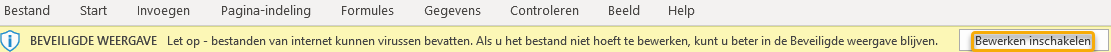 Bij het openen van het Excel-bestand verschijnen twee opeenvolgende meldingen. Negeer deze niet, zoniet zal de macro niet uitgevoerd kunnen worden.