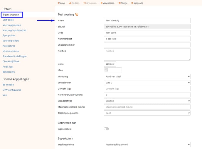 Bij de installatie wordt de voertuignaam standaard ingesteld op de nummerplaat. Als die ontbreekt, wordt het chassisnummer gebruikt. Wil je de naam wijzigen of een extra toevoeging doen? Volg dan deze stappen: