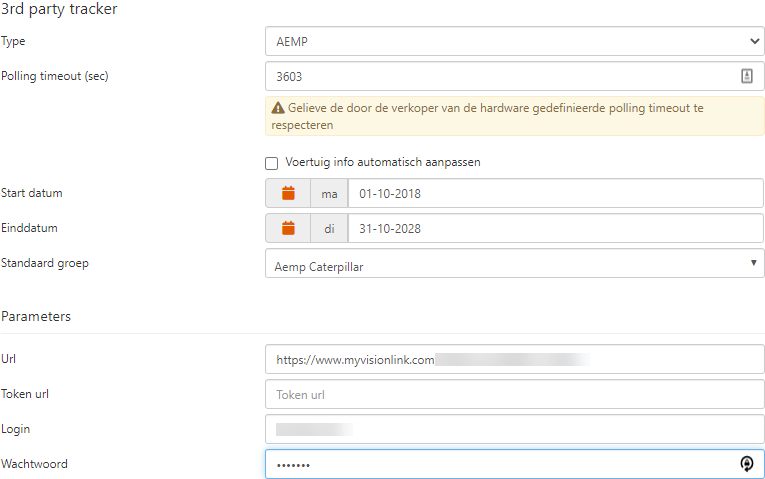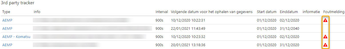 Controleer na ingave of de aangeleverde informatie correct is. Indien dit niet het geval is, wordt hiervan immers melding gemaakt in de kolom Foutmelding in het overzicht van 3rd party trackers (Config > Devices > 3rd party trackers).