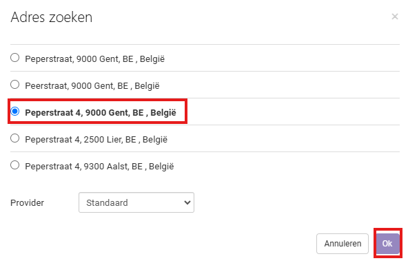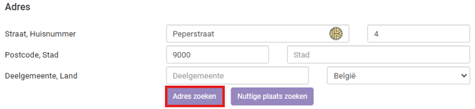 - Klik op Adres zoeken en selecteer het juiste adres uit de lijst.