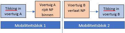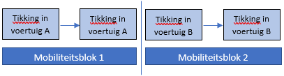 De aanbevolen methode is om in en uit te tikken in voertuig A voor de eerste mobiliteitsblok, en hetzelfde te doen in voertuig B voor de tweede mobiliteitsblok.