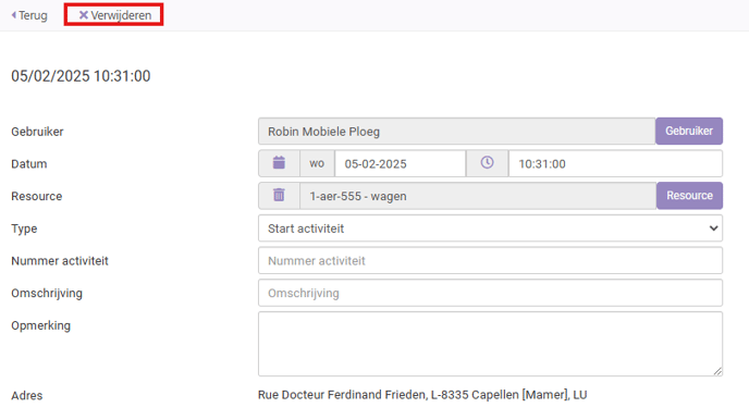 te klikken. - Selecteer de tikking(en), klik op Verwijderen en bevestig met Ok.