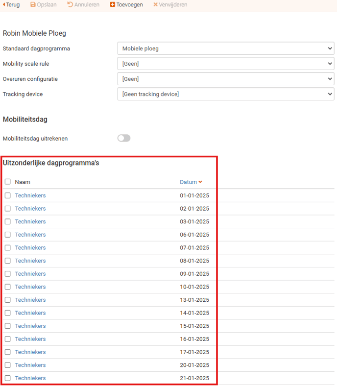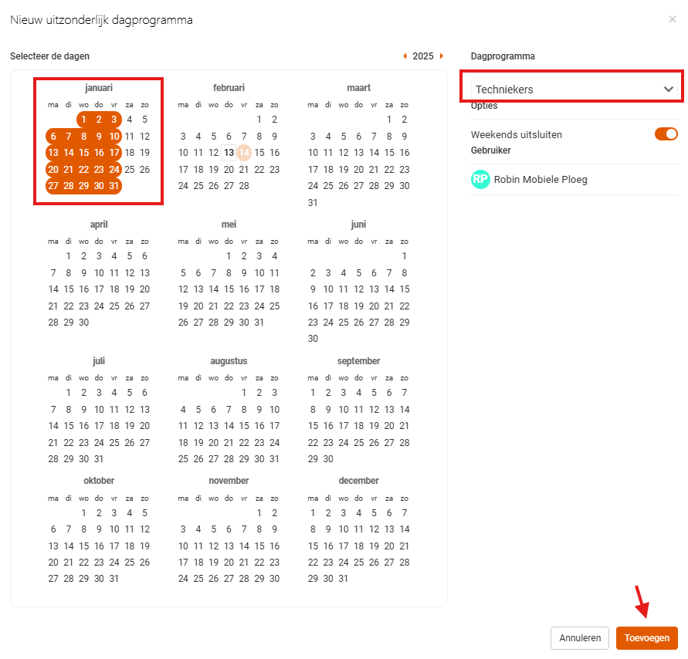 - Klik op ‘Toevoegen’ om een nieuwe uitzondering op dagprogramma in te stellen.