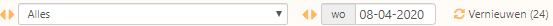 Merk op dat deze lijst zich iedere minuut vernieuwt. Deze teller bevindt zich bovenaan, rechts van het datumveld