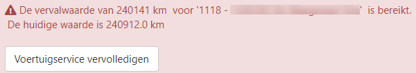 Indien het een service betreft die is gebaseerd op kilometers, zal op volgende manier melding worden gemaakt van de overschreden vervalwaarde: