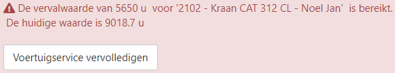 Indien het een service betreft die is gebaseerd op draaiuren, zal op volgende manier melding worden gemaakt van de overschreden vervalwaarde: