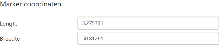 De coördinaten van de marker zijn de coördinaten van de nuttige plaats! Dit merk je op als je de marker verplaatst: de marker coördinaten (dit zijn de geografische coördinaten, te vinden onder de kaart) worden immers onmiddellijk aangepast.