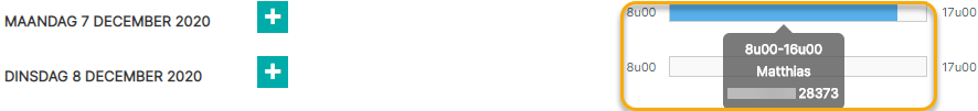 Op het werkblad Prestaties van dit rapport vind je de opsomming van de activiteiten, met daarbij de vermelding van de start- en eindtijd, alsook de duur. Dit zijn de gegevens die naar Teamleader zullen worden geëxporteerd.