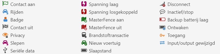 - Het icoon met de huidige status: naast de meest voor de hand liggende statussen zoals rijden en stilstaan, zijn hier nog tal van mogelijkheden.