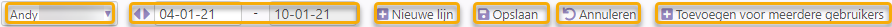 - De knop Toevoegen voor meerdere gebruikers laat je toe om een kostenplaats toe te wijzen aan de werktijd van meerdere gebruikers (zie artikel Hoe ken ik manueel een kostenplaats toe aan de werktijd van meerdere gebruikers (manuele nacalculatie)? voor meer informatie).